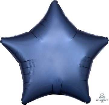 Steel Blue Satin Luxe Star Balloon. Our Mylar balloons come inflated with helium if picked up in store or scheduled for delivery. If purchased for shipping they will come flat uninflated.